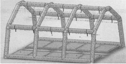 氣肋式膜結(jié)構(gòu)是一種采用高壓氣肋作為支承體系的充氣膜結(jié)構(gòu),通過(guò)將多根氣肋連接成整體的方式創(chuàng)造出使用空間,具有輕質(zhì)便攜、可快速運(yùn)輸、低耗能、安全可靠等優(yōu)點(diǎn)。