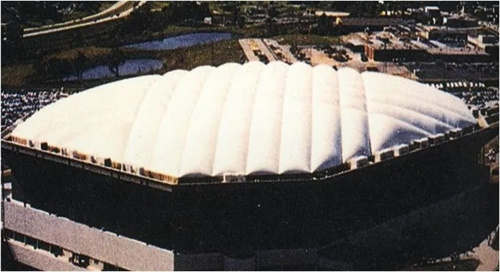 美國密歇根州龐蒂亞克銀頂體育館,曾是世界最大氣承式穹頂,跨度達(dá)168米,1975年建成,2017年拆除。
